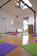 Der gut isolierte, helle Kursraum (45 qm) Wird für eine bunte Mischung an Kursen rund um die Geburt und die Familie genutzt. Aktuell gibt es Yogakurse für Schwangere, Mütter und Babys, Starke-Eltern- und Erziehungs-Kurse, Geburtsvorbereitung, erste Hilfe und Meditation. Am Nachmittag unterrichtet eine japanische Kursleiterin Kindergartenkinder im Tanz. Es stehen Matten, Decken und Gymnastikbälle zur Verfügung. |